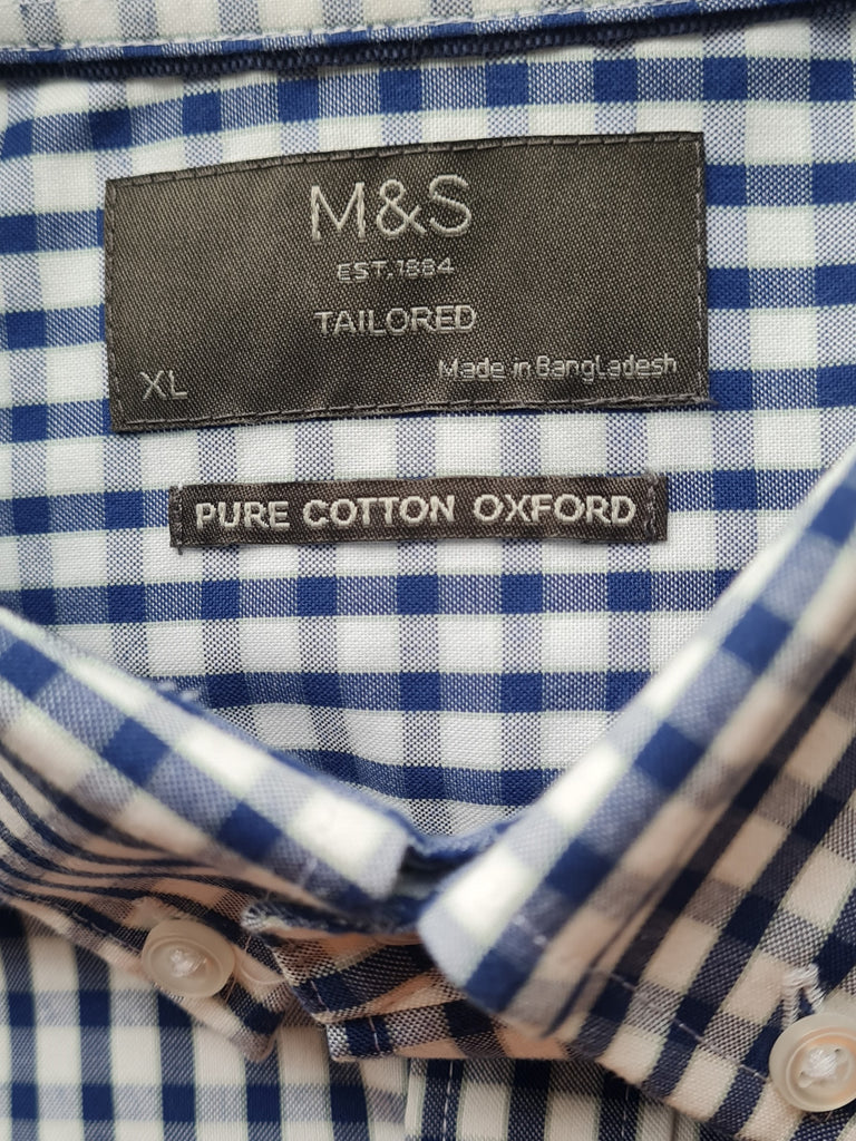• Description: Tailored fit pure cotton Oxford checkered shirt with long sleeves and a chest pocket. Button-down collar