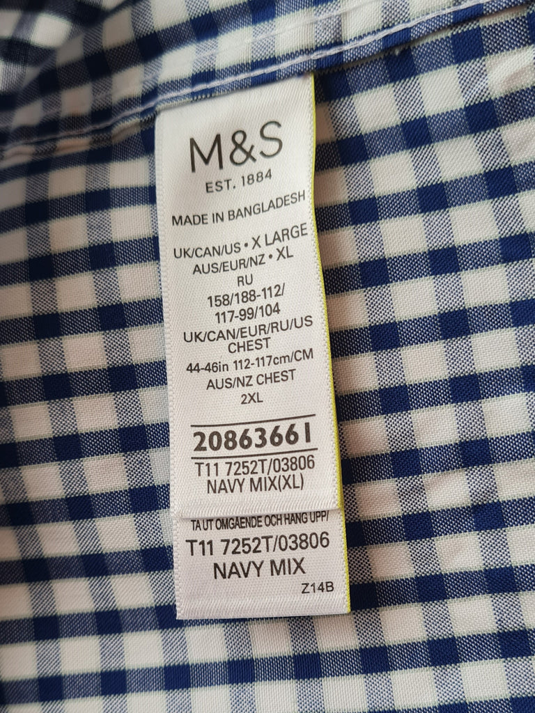 Men's Check Tailored Fit Long Sleeve Pure Cotton Shirts Size XL