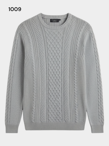 Description: A classic Primark men's jumper in light grey, featuring a fashionable cable knit pattern. This versatile jumper is the perfect choice for cooler days, offering comfort and style for both casual and more elegant outfits. This jumper is an excellent addition to your autumn and winter wardrobe, pairing well with jeans, chinos or tailored trousers.