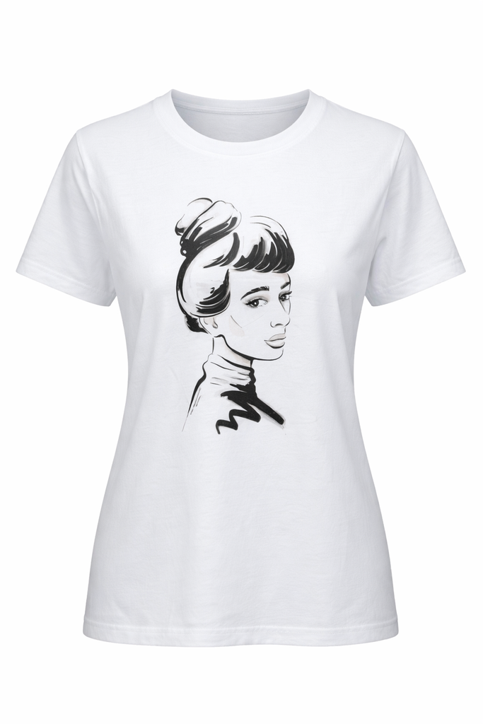 Description: A high-quality white t-shirt by Stanley/Stella from the Rocker line, created specifically for the Northern Angels brand. The front features an artistic graphic depicting Emily Wilding Davison (1872–1913) – a famous British suffragette and women's rights campaigner. The shirt is made of 100% organic cotton and is certified vegan.