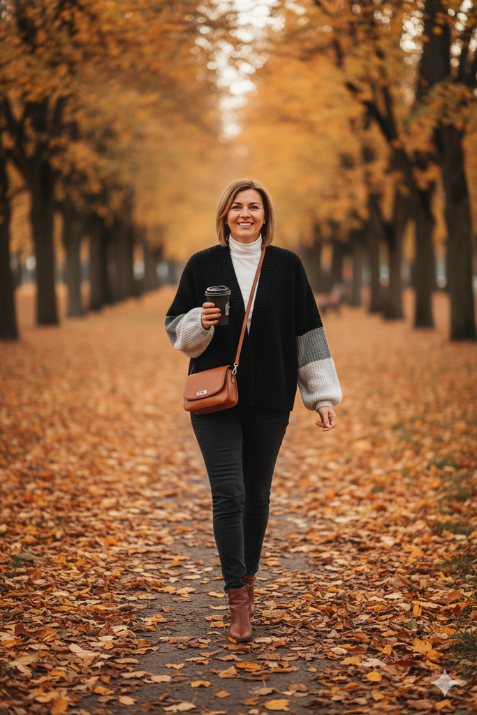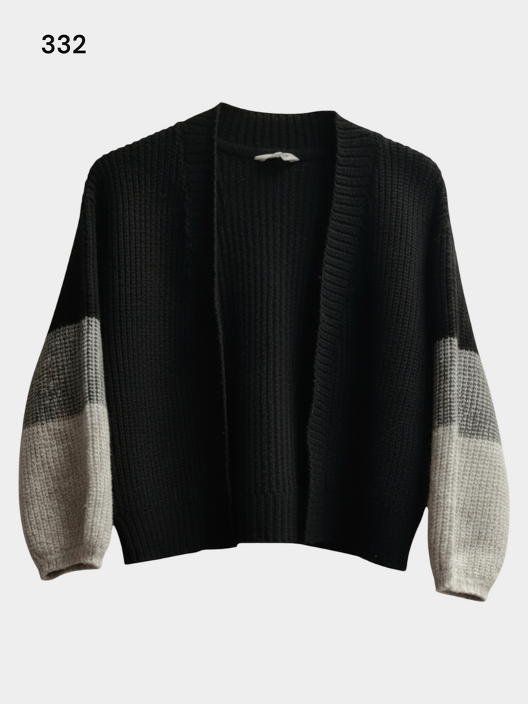 The cardigan in size L, featuring a relaxed fit and fashionable striped sleeves, will perfectly complement both everyday and more elegant outfits.