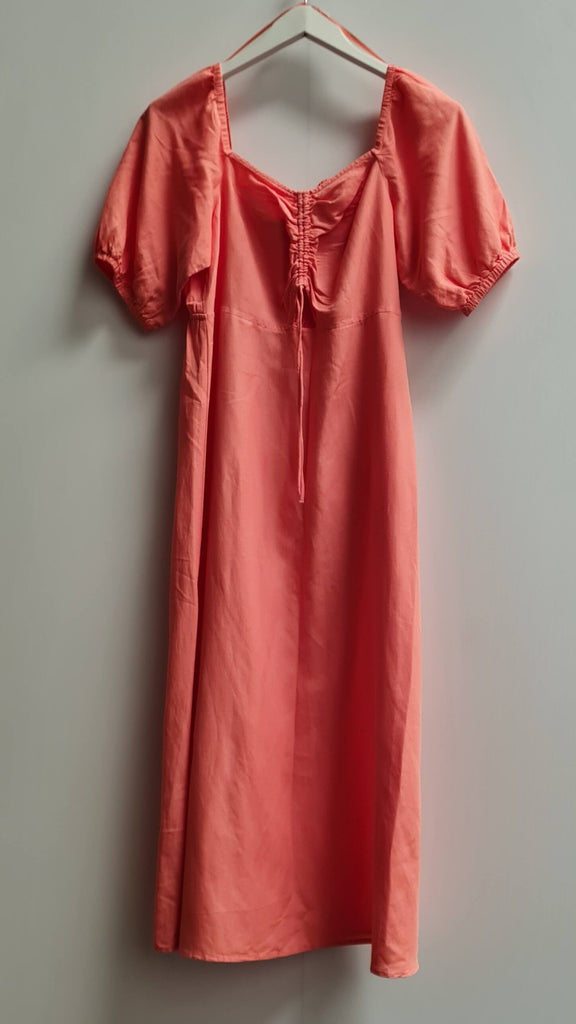Plain Cut Out Linen Blend Midi Dress Size 14