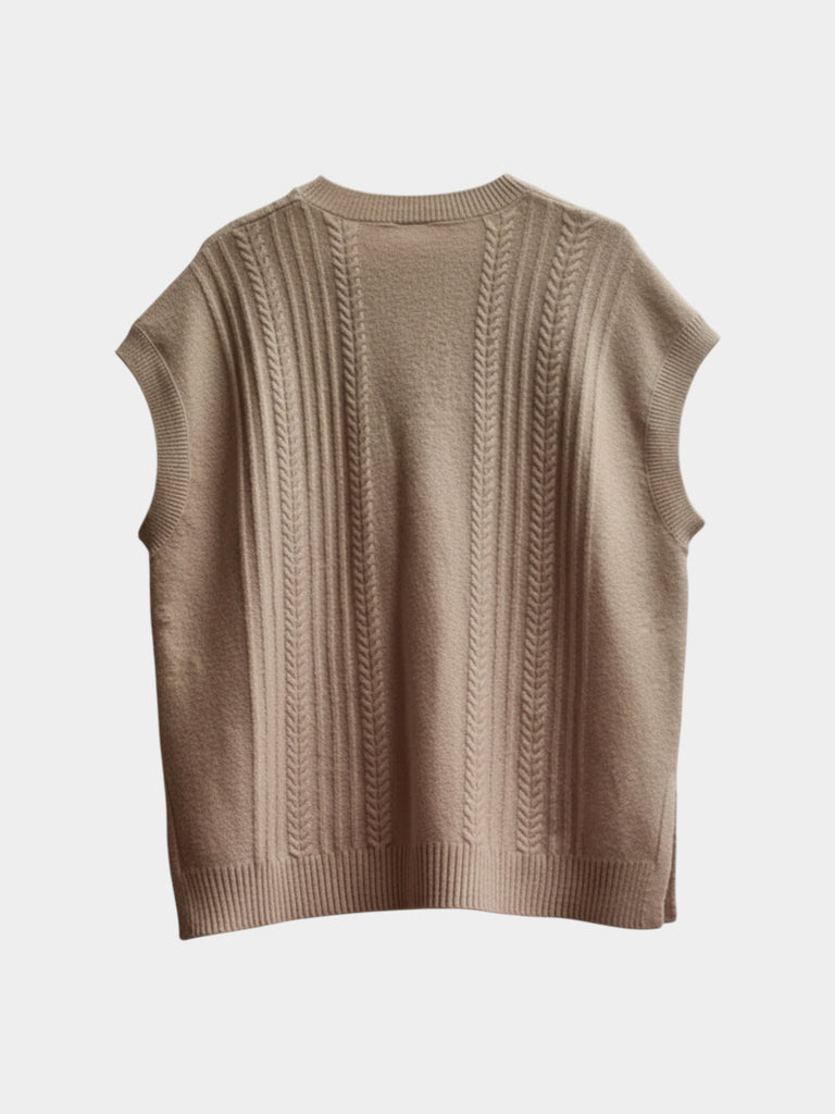 • Description: The stylish Estelle Cable Vest by AND/OR is perfect for layered looks on cooler spring or autumn days. This beige model with a cable knit is the essence of elegance and comfort. A comfortable sleeveless vest with a round neckline and side slits for freedom of movement and a modern look. The distinctive cable knit on the front adds texture and elegance. This waistcoat is the perfect choice for those who appreciate a combination of sophisticated style and comfort. Ideal for wearing over shirts, long-sleeved blouses or on its own.