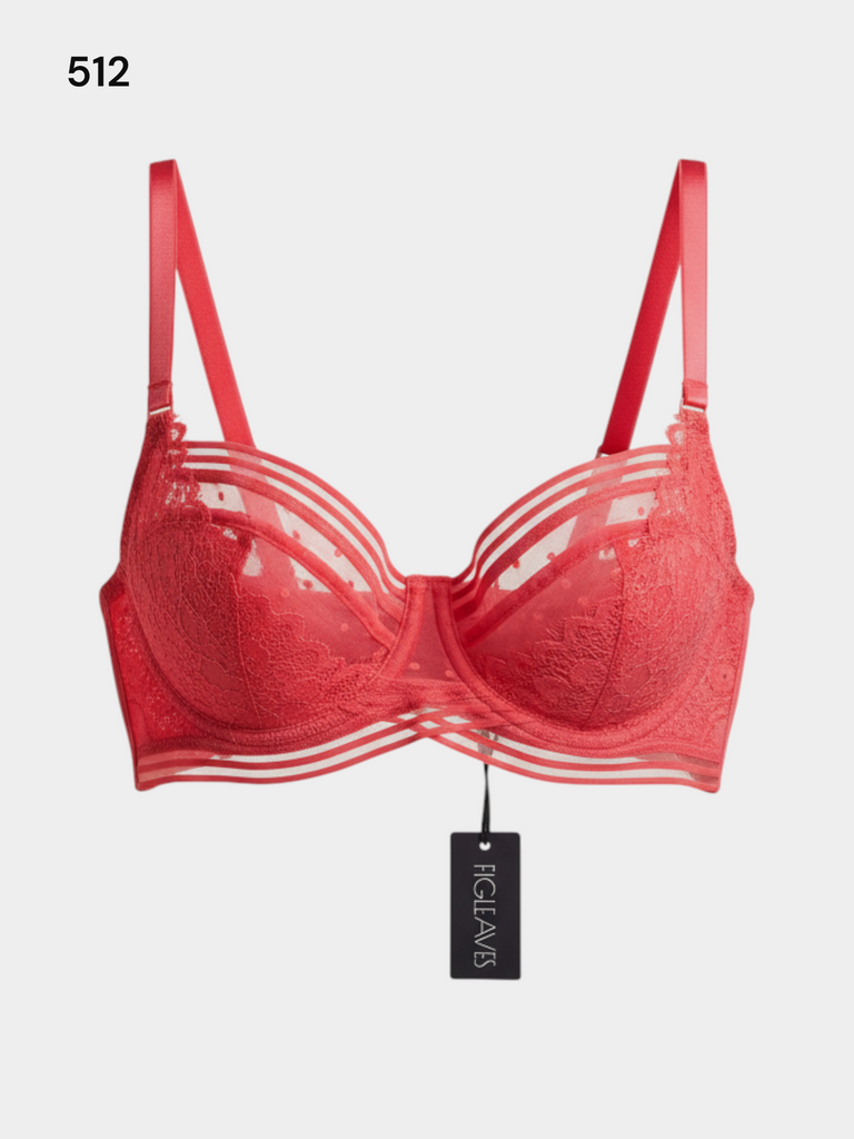 • Description: This Figleaves bra combines a bold neon coral colour with delicate lace and fashionable details. Perfect for women who value a sensual look and solid support.The cups are covered with delicate lace and semi-transparent tulle with underwires. Adjustable straps and a comfortable triple hook-and-eye fastening.