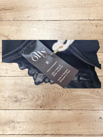Tulle made of recycled fibres: 79% polyamide, 21% elastane, of which 31% in recycled polyamide and 8% in recycled elastane.Velvet floral motifs.