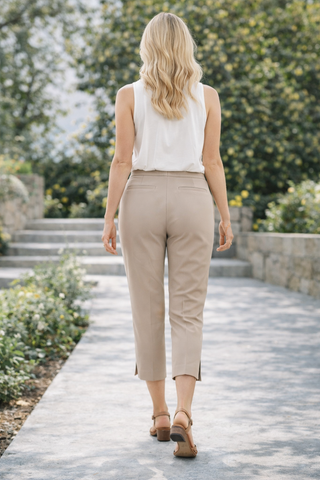 Key benefits: Comfortable cotton blend, stylish slits at the bottom of the legs, elegant hook and button fastening.