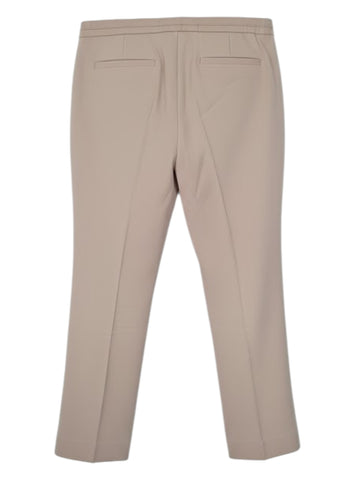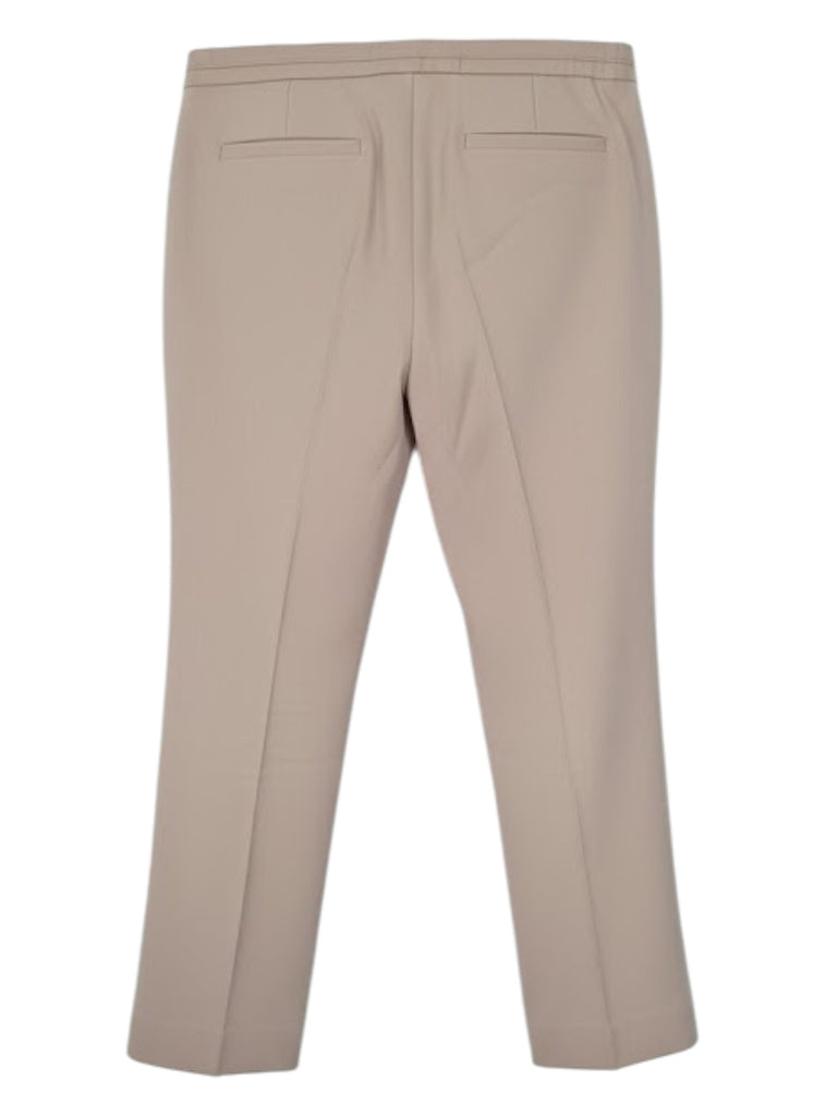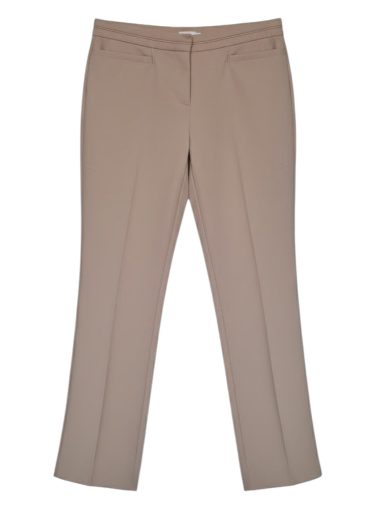 Description: Trousers with a fitted cut. There are two slit pockets at the front and two dummy pockets at the back. The trouser legs have subtle slits at the bottom on the outside. The trousers fasten with a zip, hook and button.
